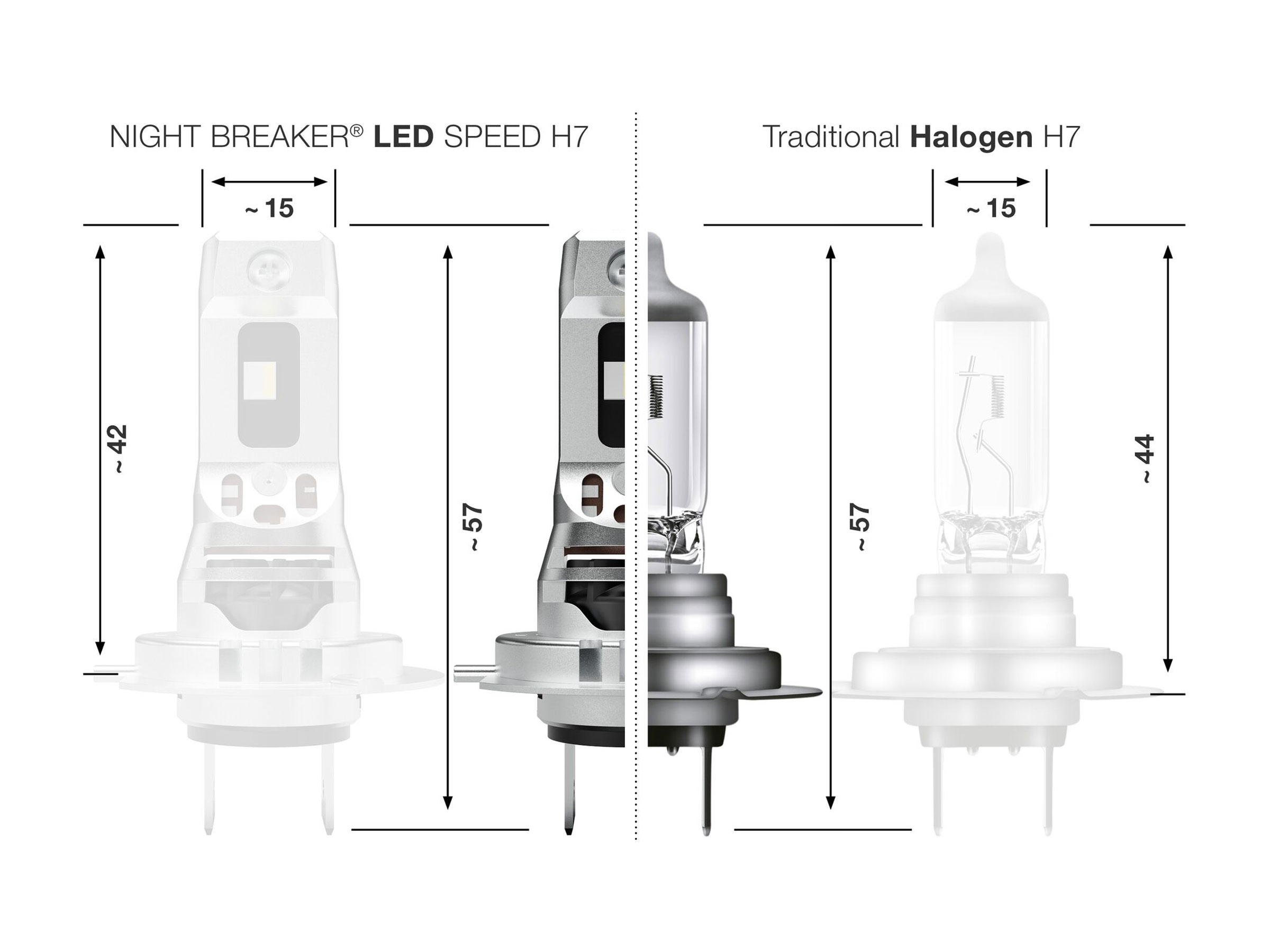 Die neue NIGHT BREAKER ® LED SPEED H7 GEN2 mit bis zu 450% mehr Helligkeit, kombiniert nicht nur die mechanische Kompatibilität und eine innovative Elektronik mit einer identischen 1:1 Bauweise von traditionellen Lampen, sondern zusätzlich auch noch alle fortschrittlichen Eigenschaften und Vorteile der straßenzugelassenen 1) LED-Lampen von OSRAM.