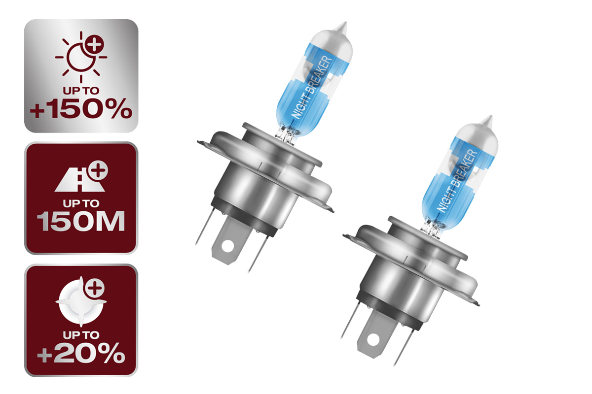 OSRAM NIGHT BREAKER® LASER NEXT GENERATION ist die ideale Lampe für Autofahrer, die mit mehr Licht sicherer und ermüdungsfrei fahren wollen – mit patentierter blauer Ringbeschichtung für weniger Eigenblendung. Halogenlampen von OSRAM sind die perfekte Lösung für Lichtanwendungen im PKW. Sie sorgen sofort für 150 % Licht, stehen mit perfekter Farbwiedergabe für beste Lichtqualität und gelten als zuverlässige und ökonomische Technologie