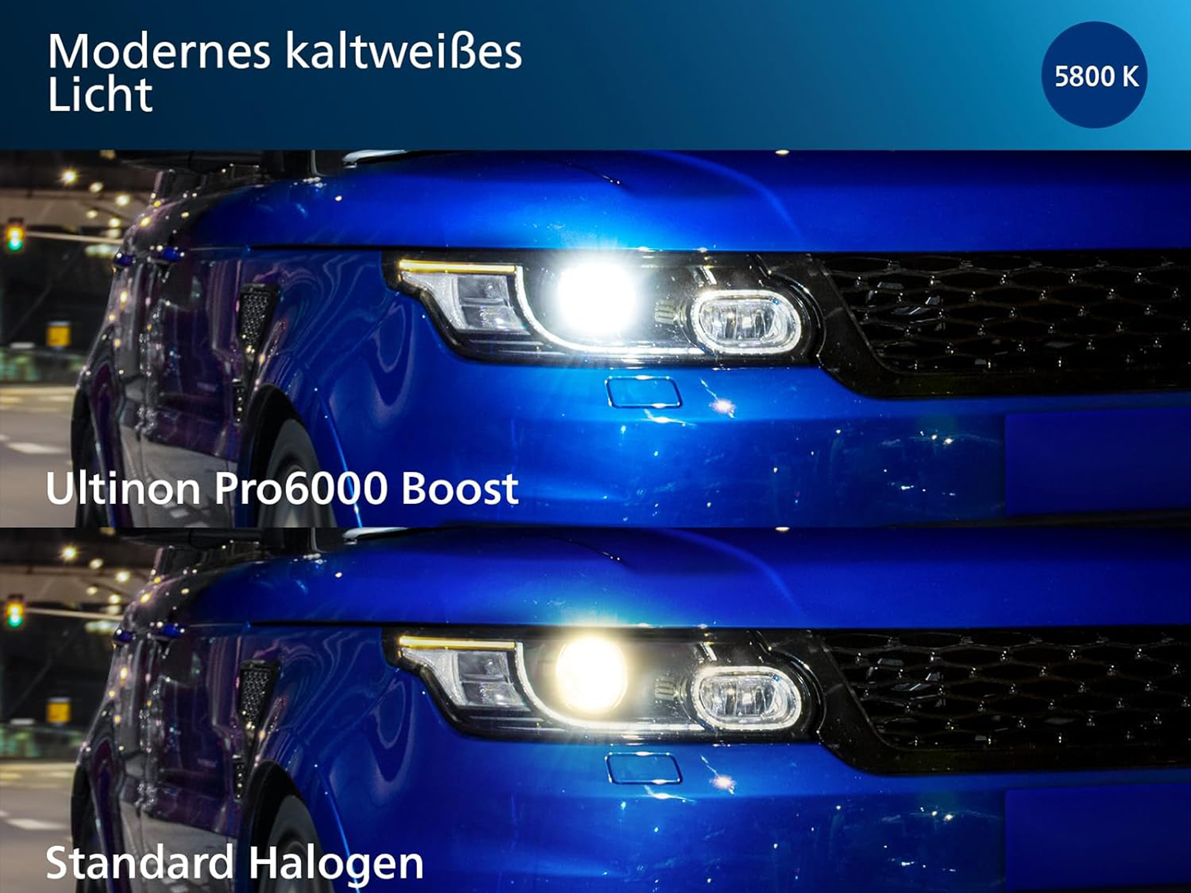 Mit der neuen Philips Ultinon Pro6000 Boost GEN2 H7-LED können Sie jetzt durch einen einfachen Lampenwechsel auf geprüfte, sichere LED-Technologie umsteigen. Wechseln Sie jetzt die Halogenlampen Ihrer Scheinwerfer mit den innovativen Philips LED-Nachrüstlampen und erleben Sie bahnbrechende Helligkeit mit Straßenzulassung*.